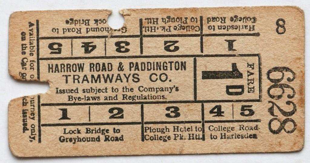 | 692 | Harrow Road and Paddington Tramways Co 1d geographical punch type ticket. | £65 |  |