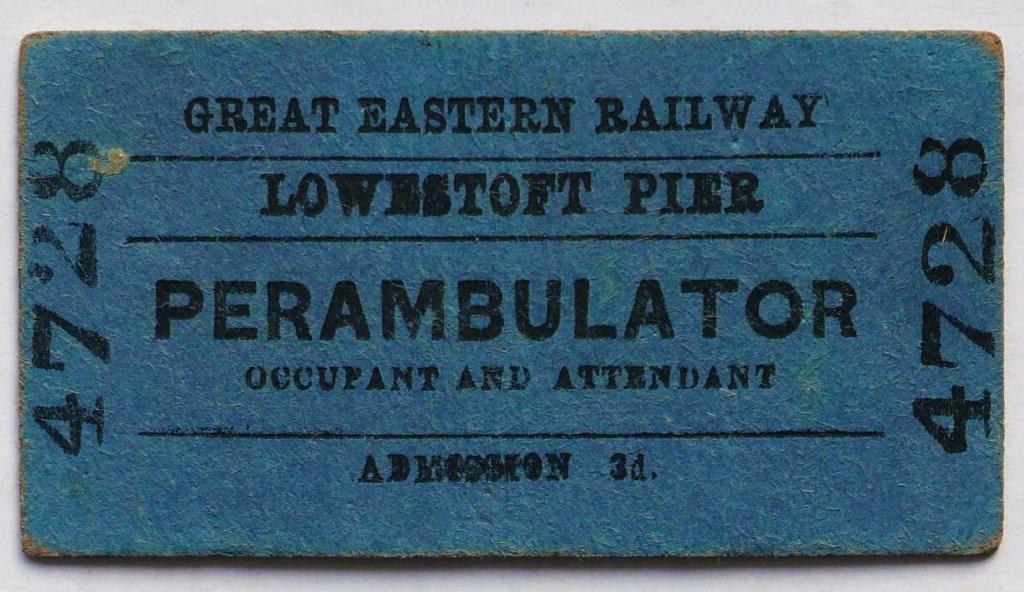 | 702 | Great Eastern Railway Edmondson type Lowestoft Pier ticket for a perambulator. Appears unissued, slight back damage. | £60 |  |