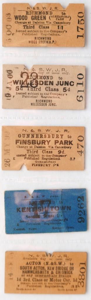 | 708 | 5 North and South Western Junction Railway whole Edmondson tickets. Most issued, one creased. | £70 |  |