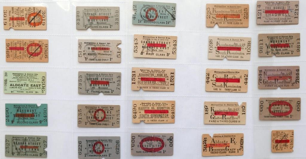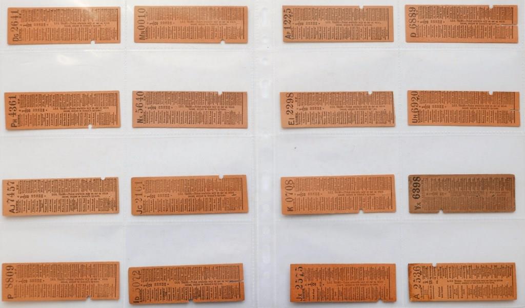 | 716 | Approx 72 Metropolitan Railway whole Edmondson tickets on blue or buff coloured card and with red ‘O’ overprint. Most issued. Back damage and creasing to a few. | £55 |  |