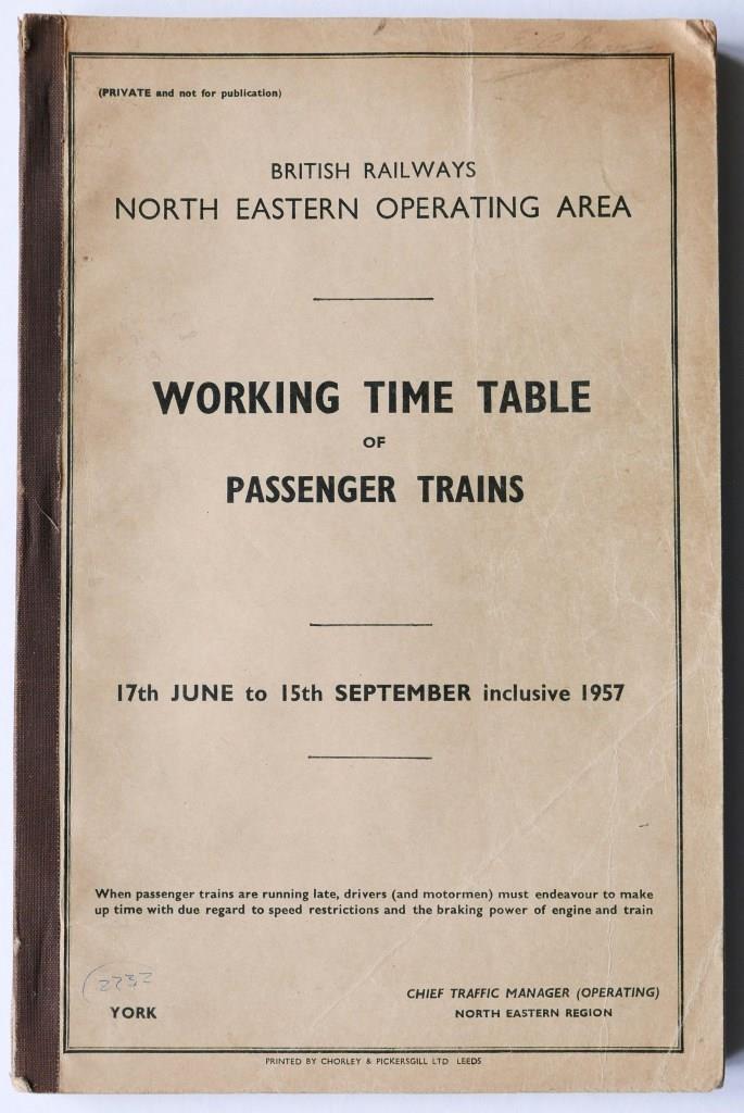 | 73 | BR(NE) sections A-G working timetable of passenger trains. 400+pp dated June 1957. Covers creased. | £65 |  |