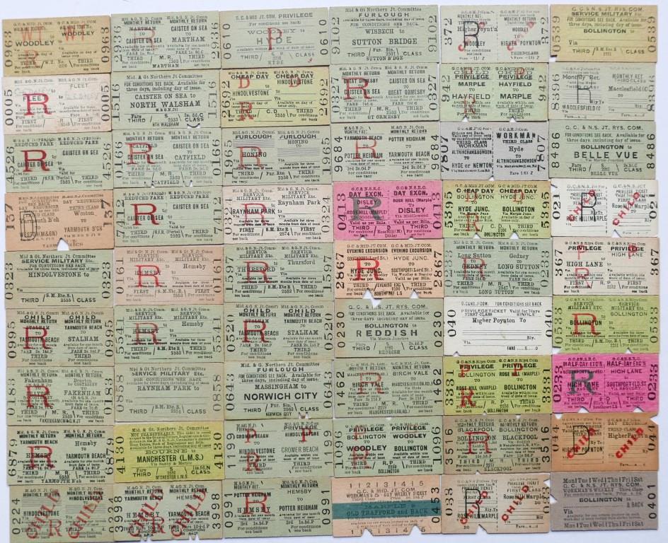 | 744 | Approx 140 whole Edmondson tickets from joint companies including 70 M&GN, 56 GC&Mid Joint, 6 GC&NS, 5 O&I. Plus 18 Mersey Railway. Most unissued. | £60 |  |