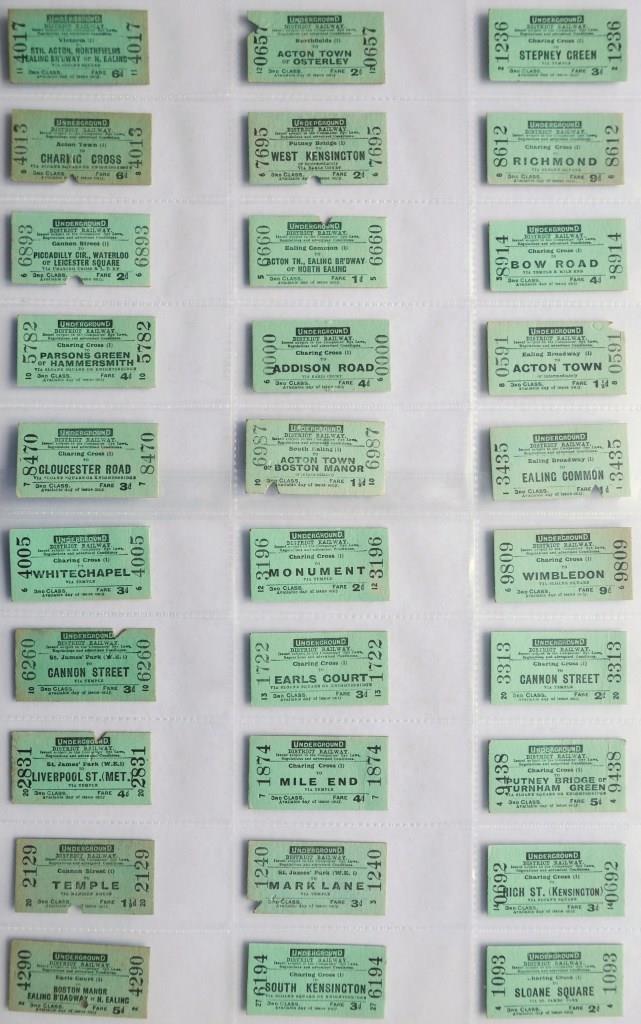 722Approx 73 Underground District Railway 3rd class whole Edmondson tickets on green coloured card. Most issued. £70