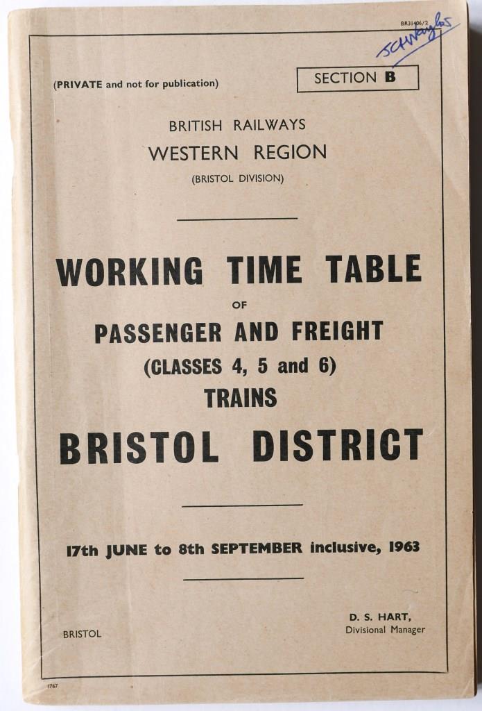 73BR(W) section B working timetable of passenger and freight trains (classes 4,5 & 6) Bristol District. 275pp dated June 1963. £24