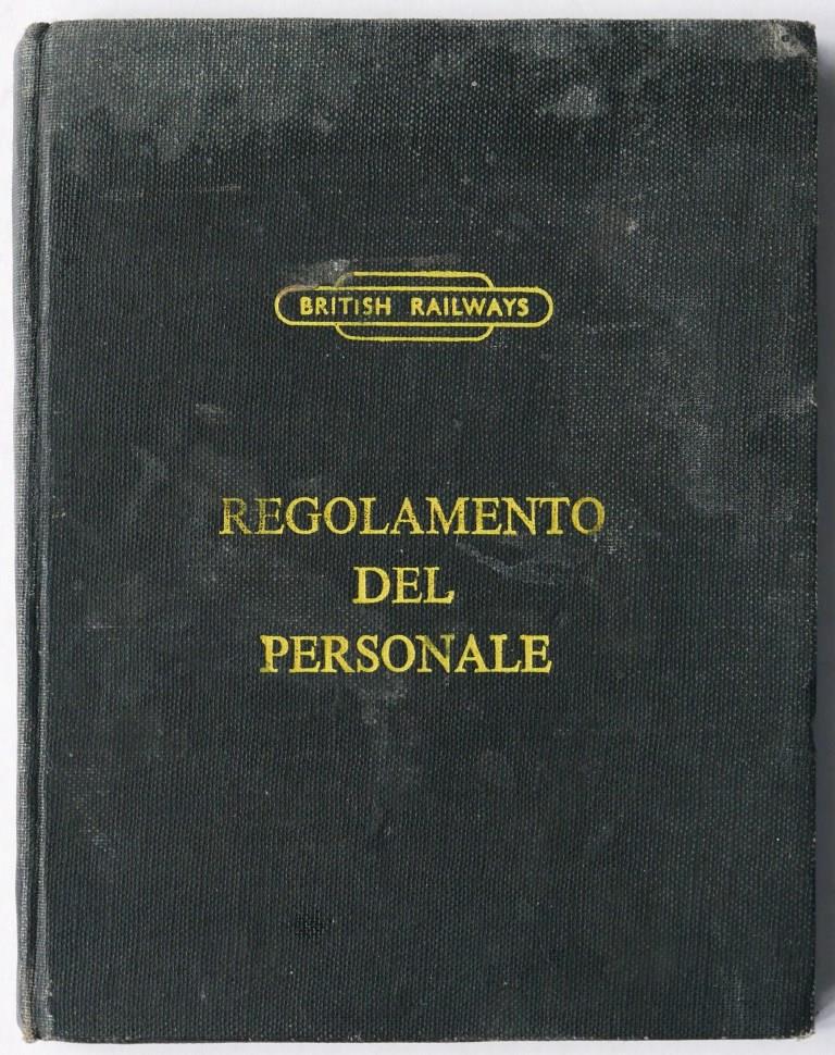 63BR rule book ‘Regolamento del Personale’. Cloth bound hardback covers with title in yellow on front. Undated but appears to be an Italian version of the 1950 issue. 90pp, marking to covers. £5