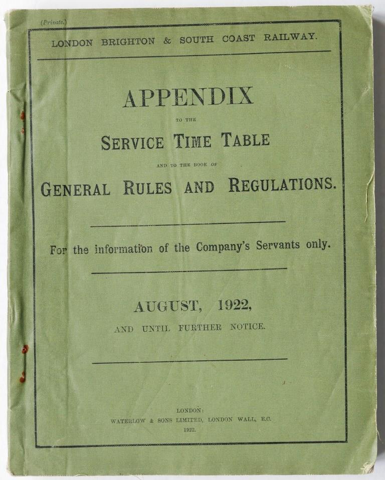 793Neath and Brecon Railway rule book. Cloth bound hardback covers with title stamped into front, 390pp dated January 1916. Minor spine wear. £210