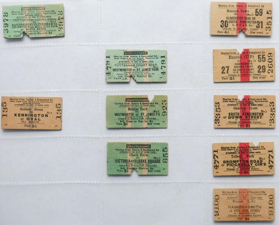74010 Charing Cross, Euston & Hampstead Railway whole Edmondson tickets. Most issued, slight creasing to a couple. £32