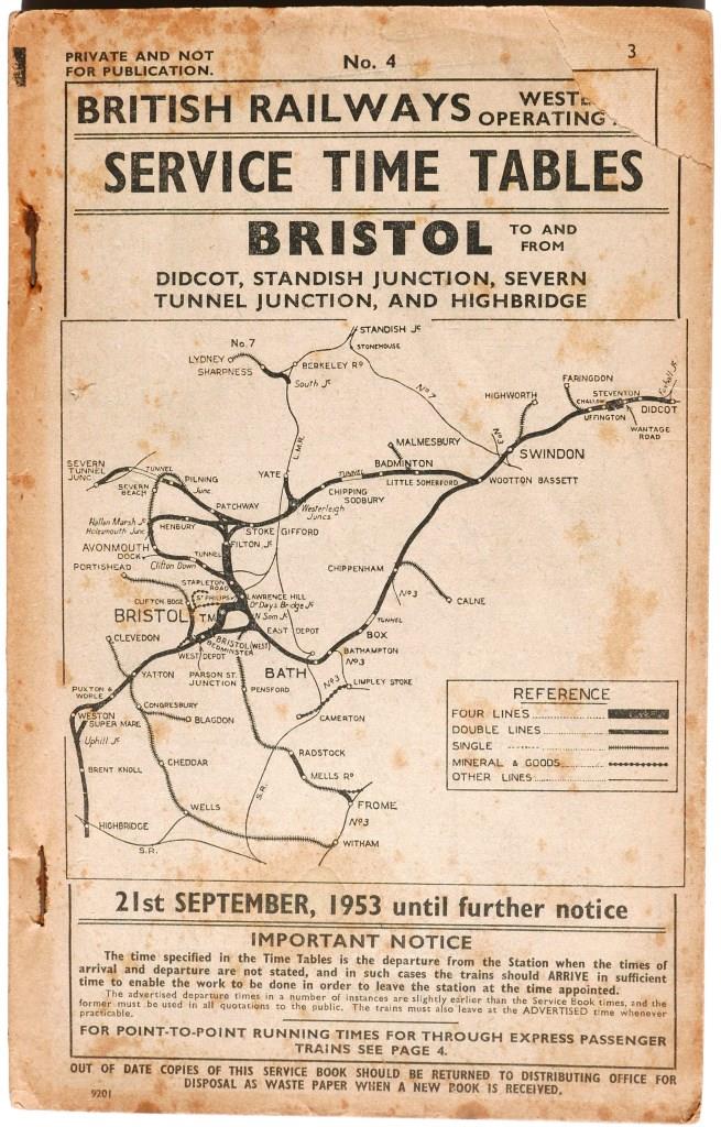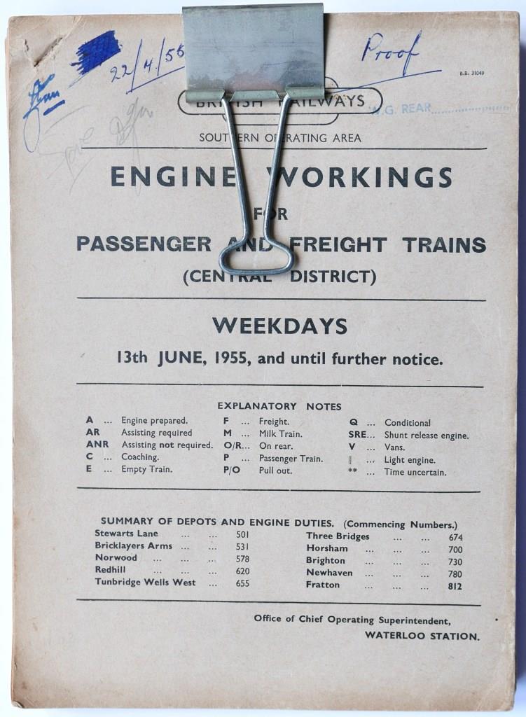 81BR(W) service timetable sections 1 – 16. 1000+pp bound into 3 separate sections in modern leather bound, hardback covers with title in gold on spine. Dated September 1952. £90