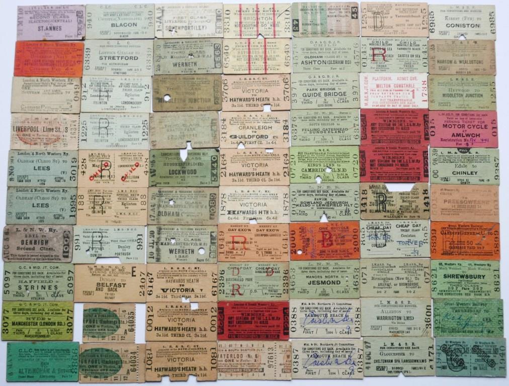 782Approx 93 whole Edmondson tickets including 10 LMS, 5 GWR, 17 MSJ&AR, 11 M&GNR, 10 LBSCR, 9 L&YR, 5 LNER, 3 OA&GBJR, 2 LSWR, 2 Mersey, 6 LMS-NCC, 3 CLC, 2 GC& Mid Joint, 8 LNWR. Most issued, condition varies. £110
