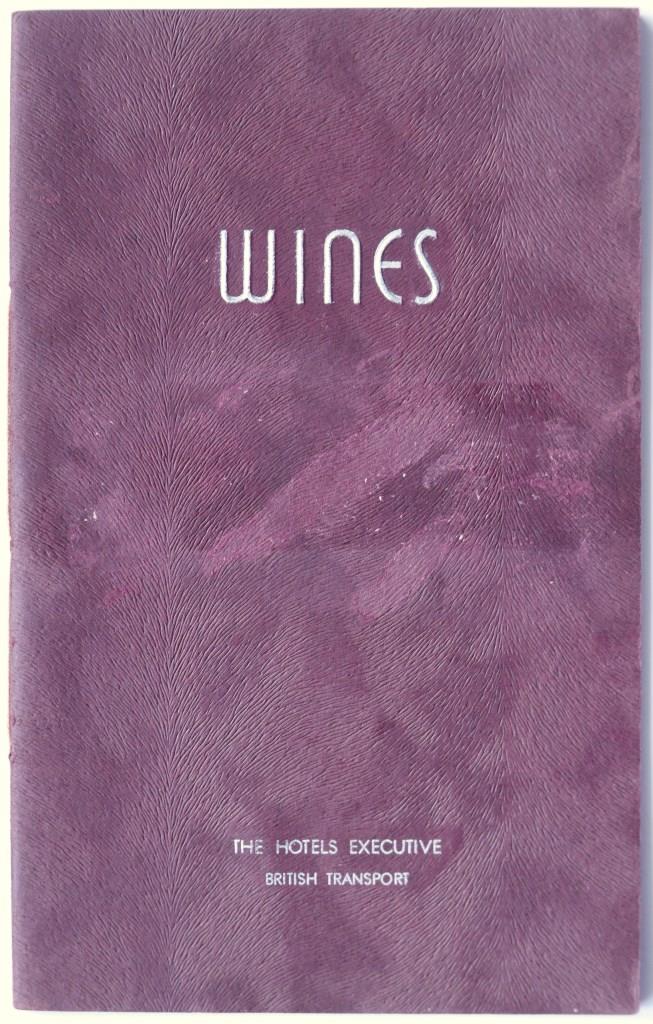 | 52 | British Transport Hotels Executive ‘Wine List’. Maroon paperback covers with title in silver on front. 23pp, undated. | £14 |  |
