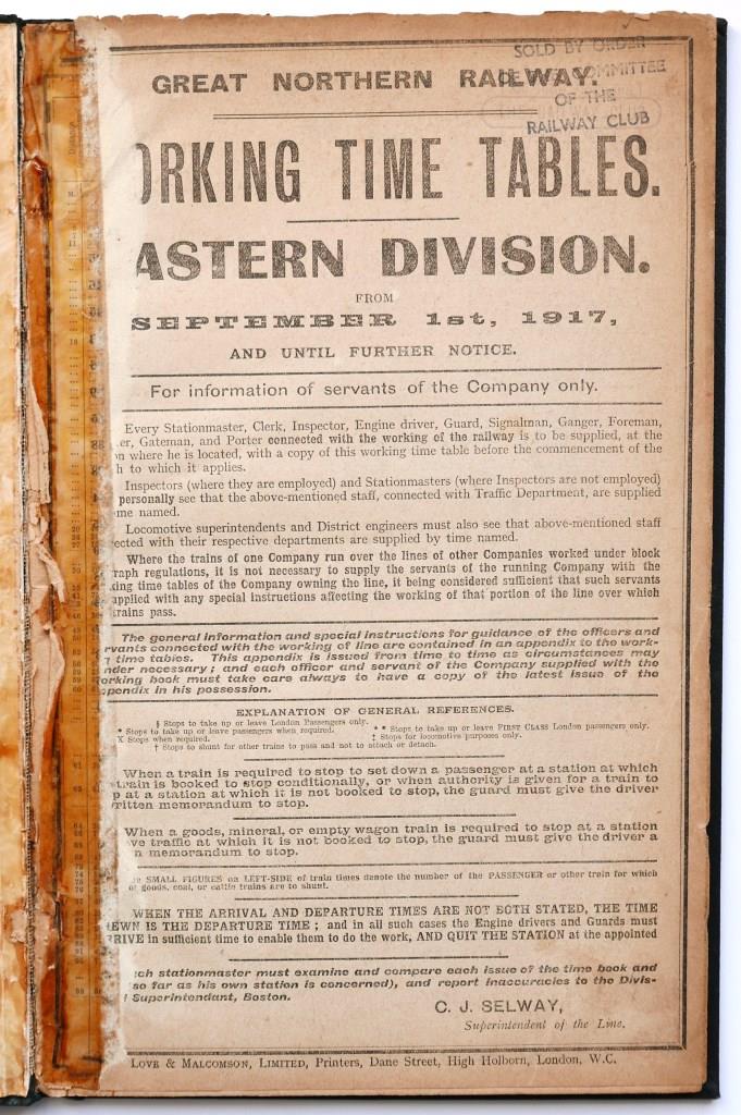| 652 | NER ‘Programme of Signalling Arrangements, Permanent Way Notices’ No.O.3453 dated 19th June 1909. 32pp, printed on orange paper. Marked/grubby, damp stained. | £46 |  |