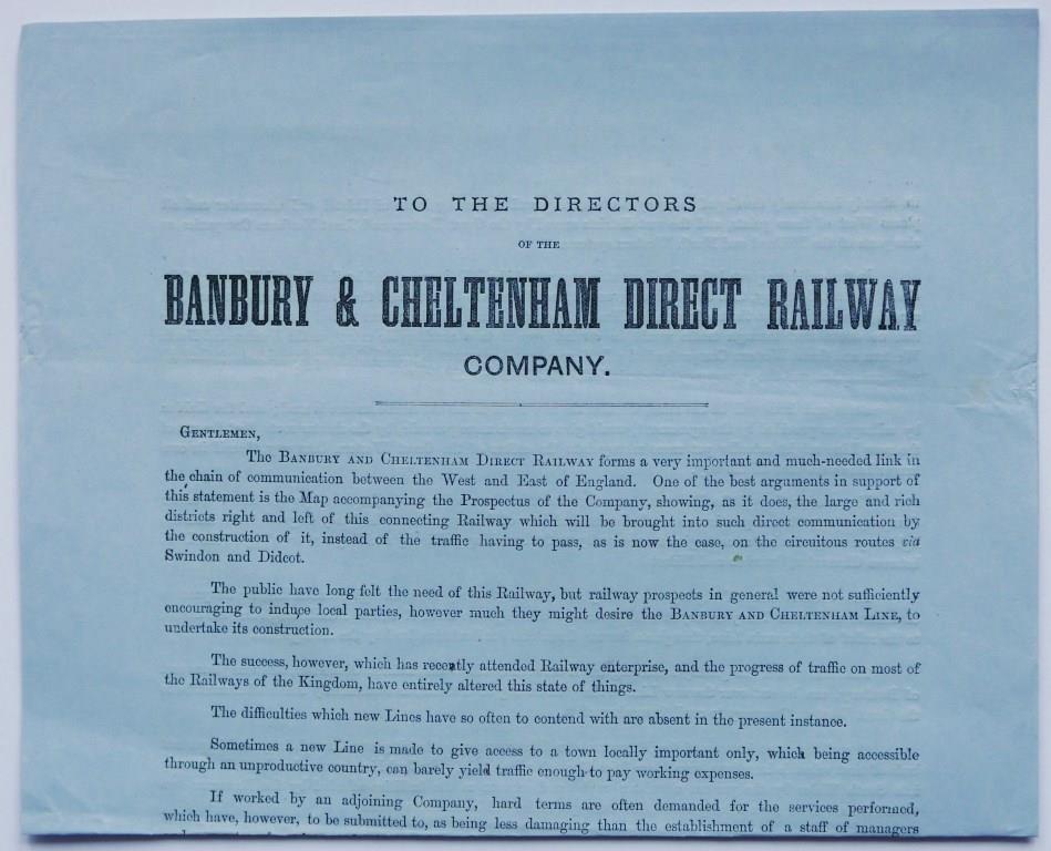 | 654 | Diss, Beccles and Yarmouth Railway prospectus. Foolscap sized, 4pp including map of the line. Undated, trimmed at top and bottom edges, not affecting text. | £22 |  |