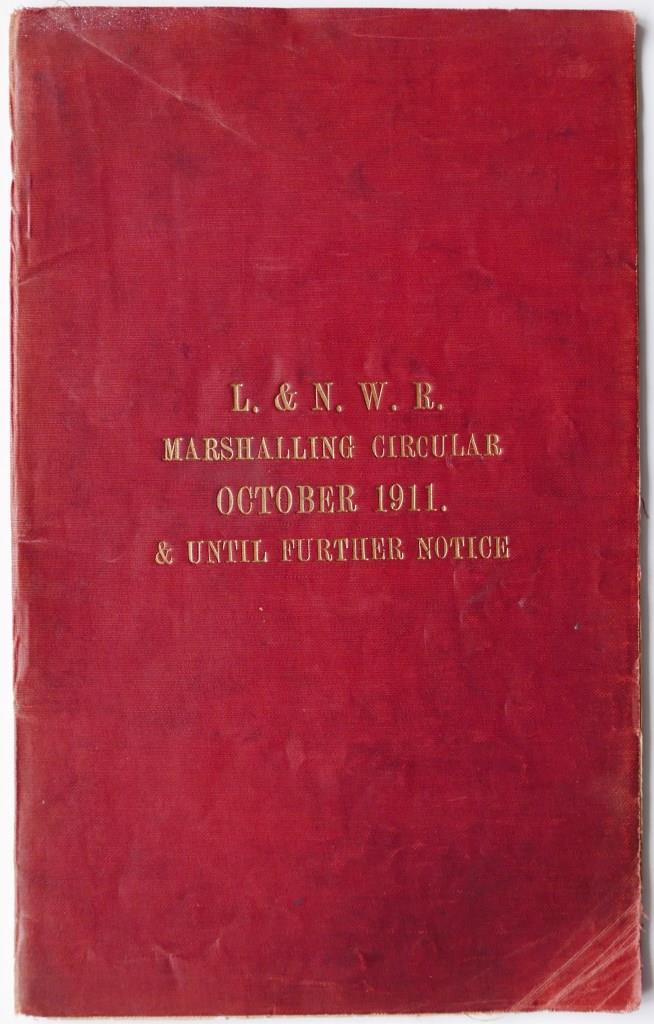 | 649 | LNWR booklet ’Marshalling Circular’. 40pp dated October 1911. Contained in original cloth covers with title in gold on front. Tape repairs inside covers. Click here for second image | £100 |  |