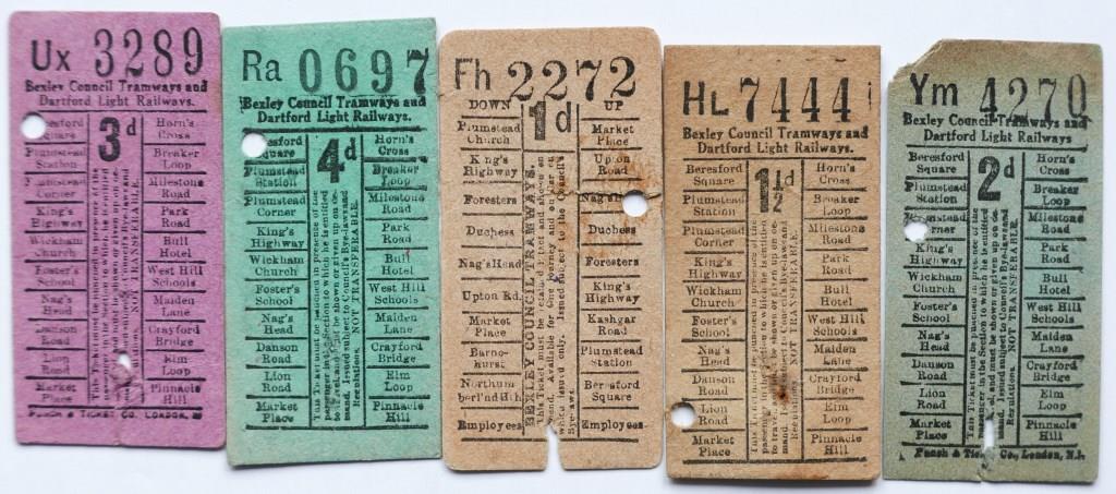 | 713 | 5 Bexley Council Tramways and Dartford Light Railways geographical punch type tickets. Values 1d to 4d. | £38 |  |