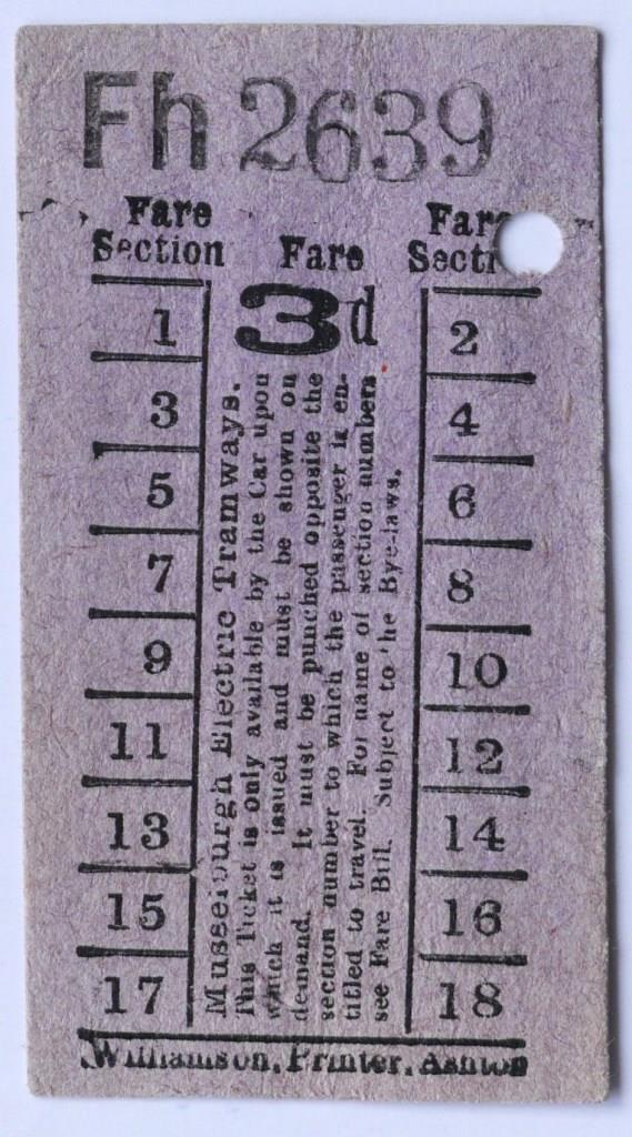 | 724 | Musselburgh Electric Tramways 3d numerical punch type ticket. | £60 |  |
