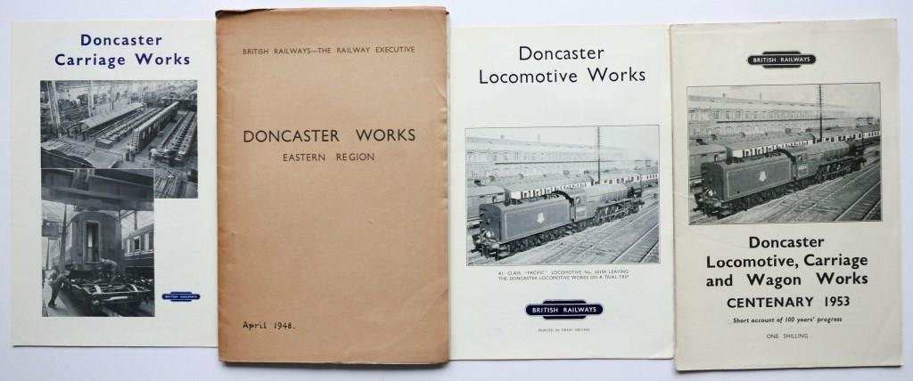 | 86 | Railway Executive internal publication ‘Doncaster Works Eastern Region’. Card covers, 16 typescript pages plus fold out diagrams. Dated April 1948. Plus 3 BR glossy leaflets re the works, from the 1950s. | £16 |  |